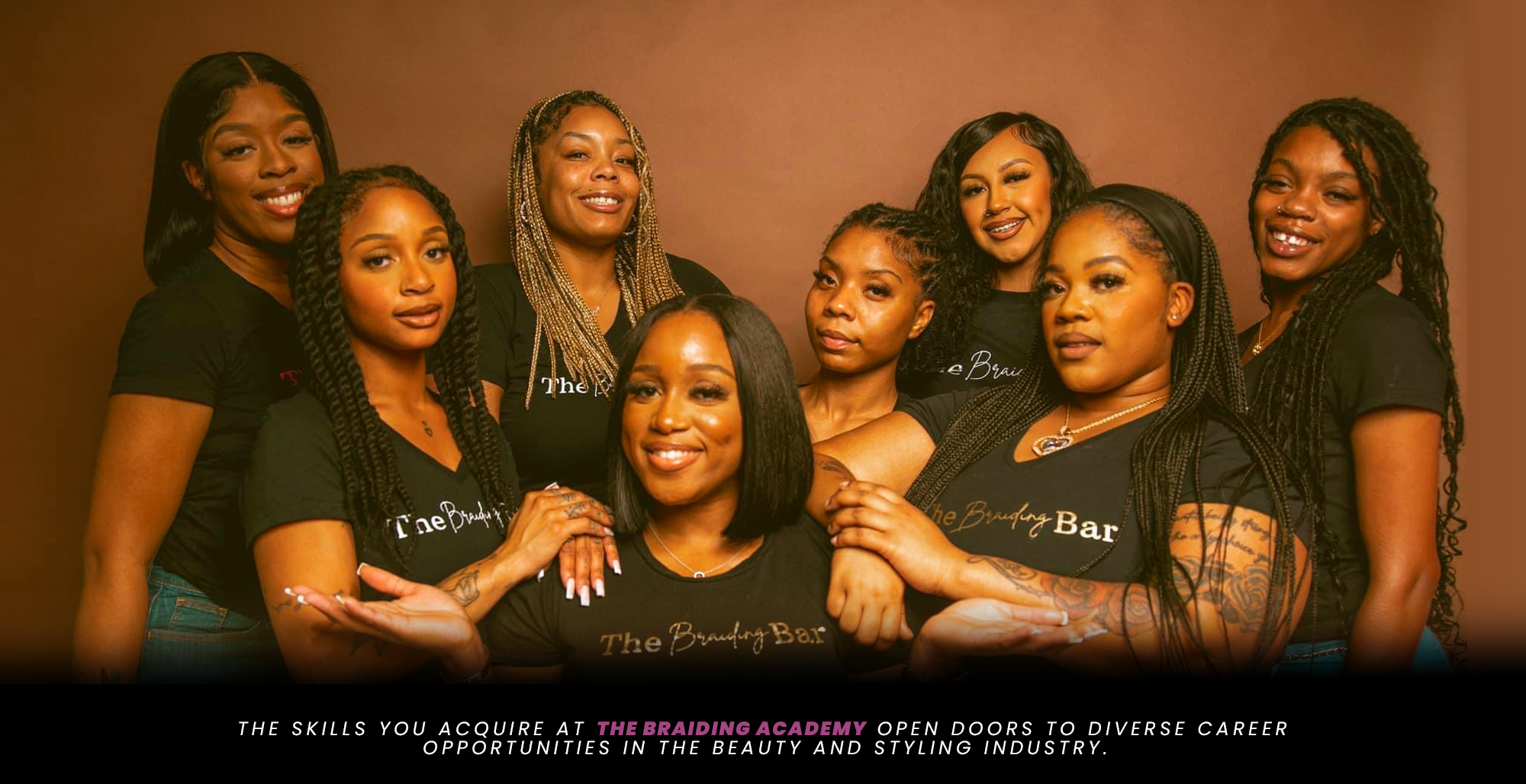 Imagine transforming your passion for braiding into a thriving six-figure career! At The Braiding Academy, we empower our students with the skills, knowledge, and entrepreneurial spirit needed to elevate their craft to new heights. With a curriculum designed to not just teach braiding techniques but also business acumen, marketing strategies, and client engagement, our future braiders have the potential to turn their love for braiding into a lucrative six-figure venture. Join us, and let's weave the path to success together!